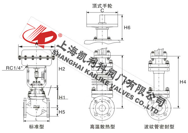 上  閥  蓋 標準型:-17-230℃  散熱型:230-450℃  低溫型:-60--196℃  波紋管密封型:-40-350℃