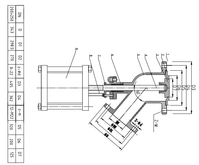 國標(biāo)法蘭DN250,內(nèi)孔是250mm,當(dāng)用戶直接把國標(biāo)法蘭焊在反應(yīng)釜底的時候,我們的下料口并不是250mm,我們還需要一個閥座外徑為250mm,內(nèi)孔為180mm套在反應(yīng)釜底部法蘭,這時留給閥板的位置只有直徑為180mm,則下料口直徑為180mm。假如由廠家提供反應(yīng)釜底下的法蘭,廠家提供的DN250法蘭,內(nèi)孔會開設(shè)到285mm,在套上外徑為285mm的閥座上去,內(nèi)孔留有200mm。